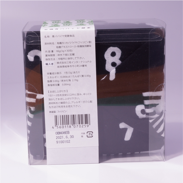 酵素を体に美味しく、青パパイヤ発酵食品。 酵青パパイヤ酵素バイオ色柄。