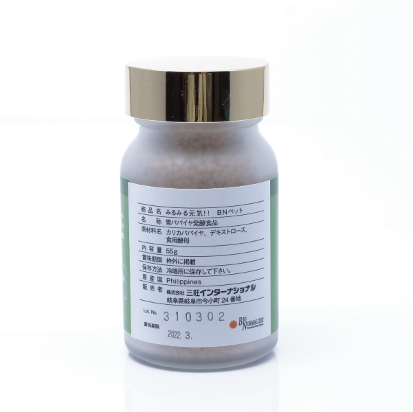 事实上,犬和猫为了消化食物无需人类所需要的全部营养素。然而,自从与人类共同生活以后,这一必要性凸显。使用发酵青木瓜制成的BN宠物将有助于保持肠内环境的健康。