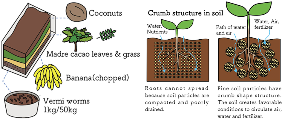 香蕉及可可还可成为蚯蚓粪的饲料,并作为氮、磷、钾等珍贵营养盐,助力木瓜的生长。