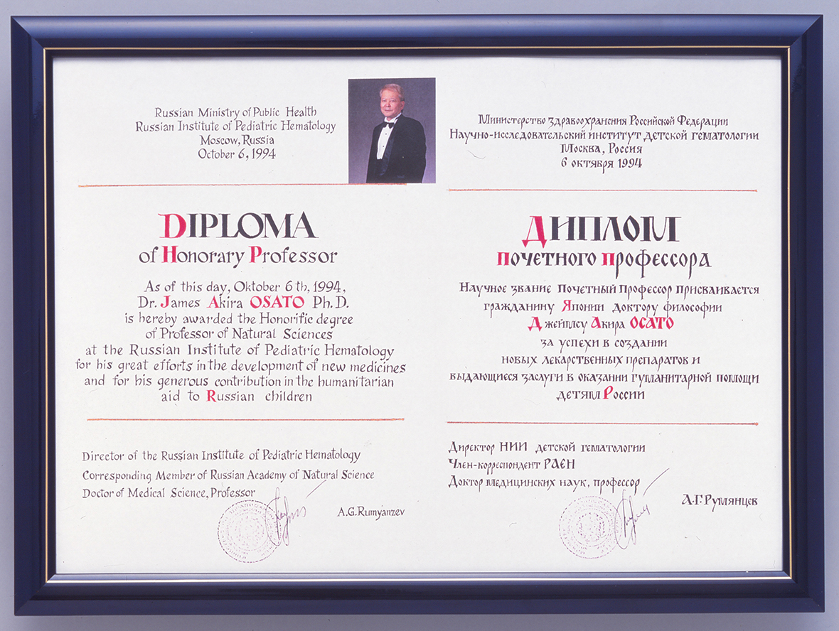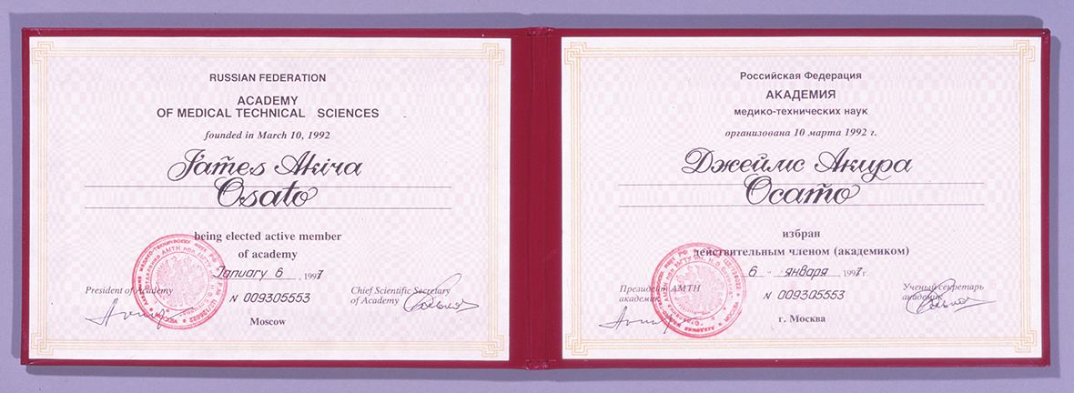 被医学工学、科学学院、俄罗斯部会封为院士。(1997)