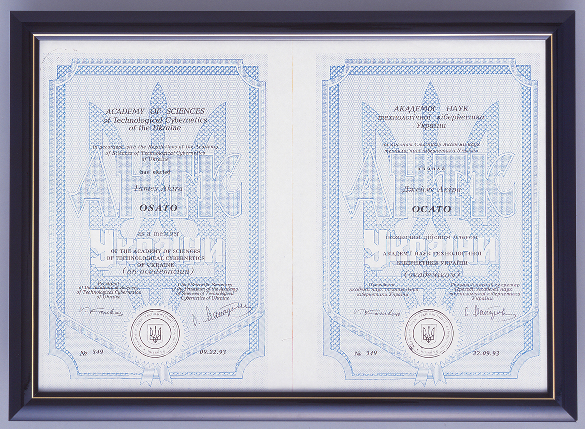 被乌克兰化学学院(技术控制论)封为院士。(1993)