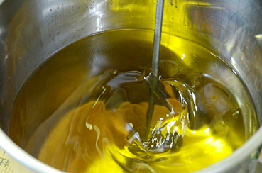 4.变得粘稠时,加入植物黄油、精油进行搅拌。然后放入模具中,在保温室静置24小时。